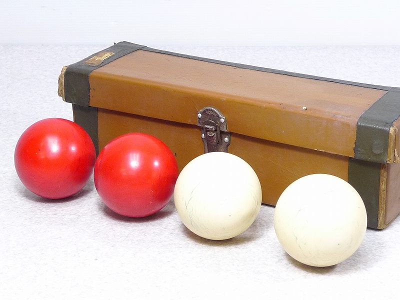 白材 ビリヤードボール ビリヤード球 ビリヤード玉 紅白4球セット 総重量1007g/ケース付/アンティーク