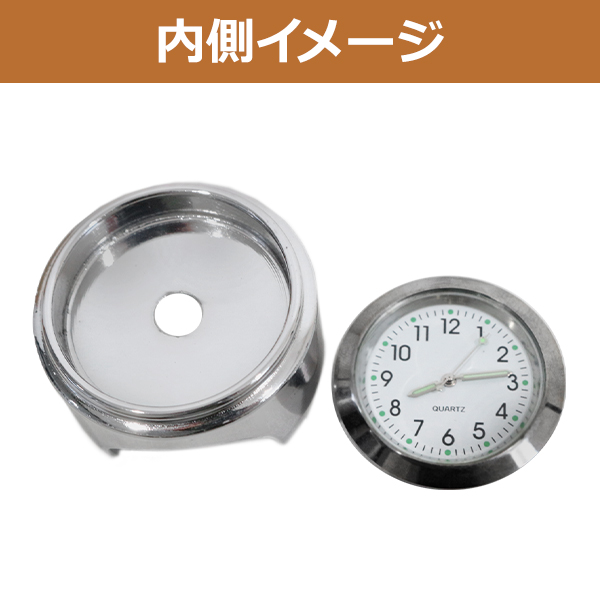 バイク 時計 アナログ ハンドル 取付 22.2mm - 25.4mm ハンドルクランプ 防水 夜光 汎用 ウォッチ シルバー メッキ 白 ホワイト バーの画像3