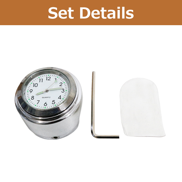 バイク 時計 アナログ ハンドル 取付 22.2mm - 25.4mm ハンドルクランプ 防水 夜光 汎用 ウォッチ シルバー メッキ 白 ホワイト バーの商品説明