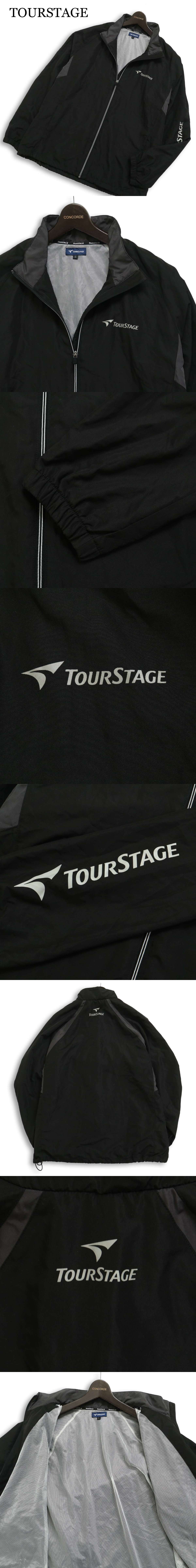 TOURSTAGE ツアーステージ ゴルフ 通年 ロゴ★ ウィンドブレーカー ジップ ブルゾン ジャケット Sz.L メンズ 黒の落札結果