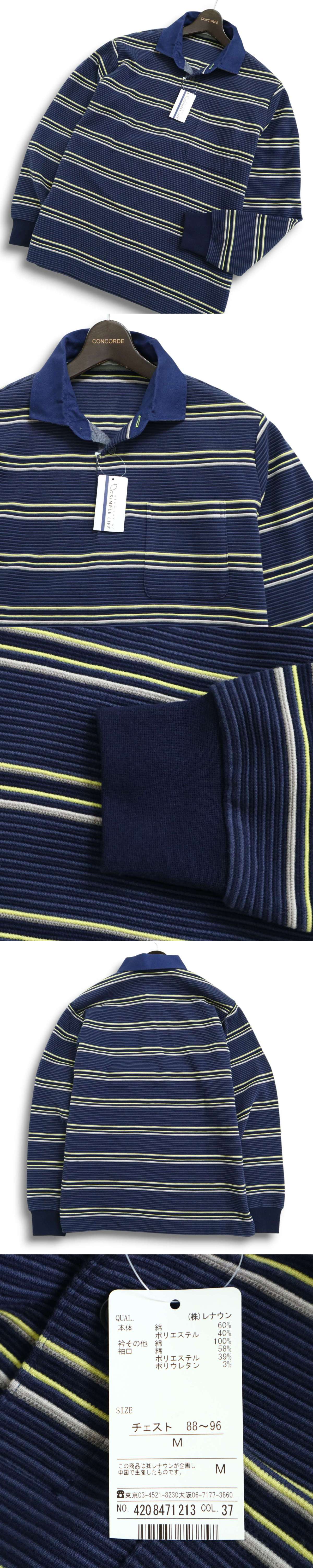 【新品 未使用】 SIMPLE LIFE シンプルライフ レナウン 秋冬★ ボーダー 長袖 ポロシャツ Sz.M メンズ 紺 ネイビーの落札結果