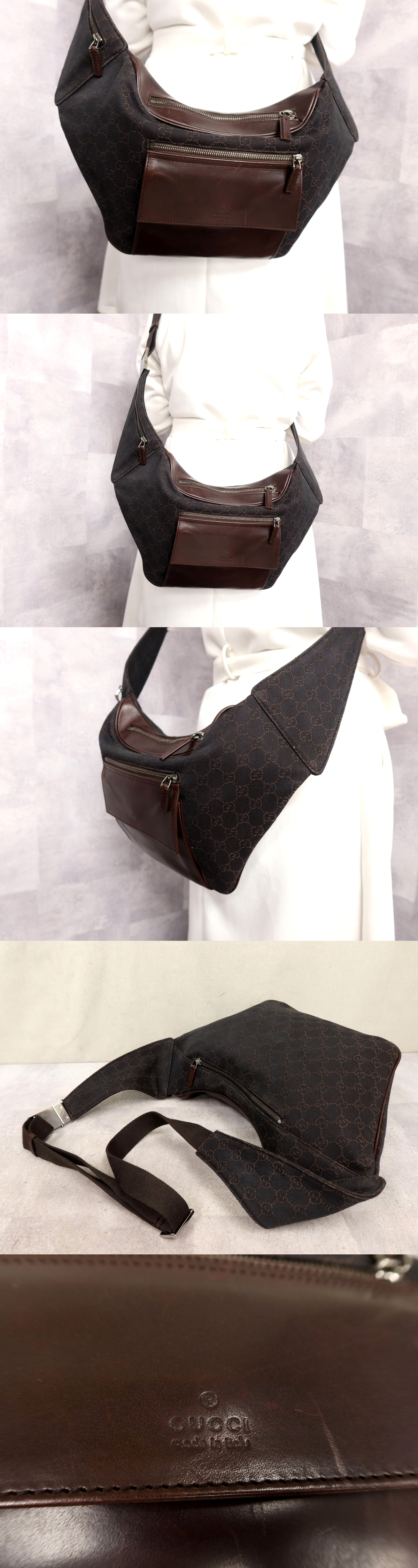 ●超美品●GUCCI グッチ●メンズ●GGデニム カーフ レザー 本革●ショルダー バッグ●ブラウン 黒●イタリア製●斜め掛け●かばん●Js62984の落札結果