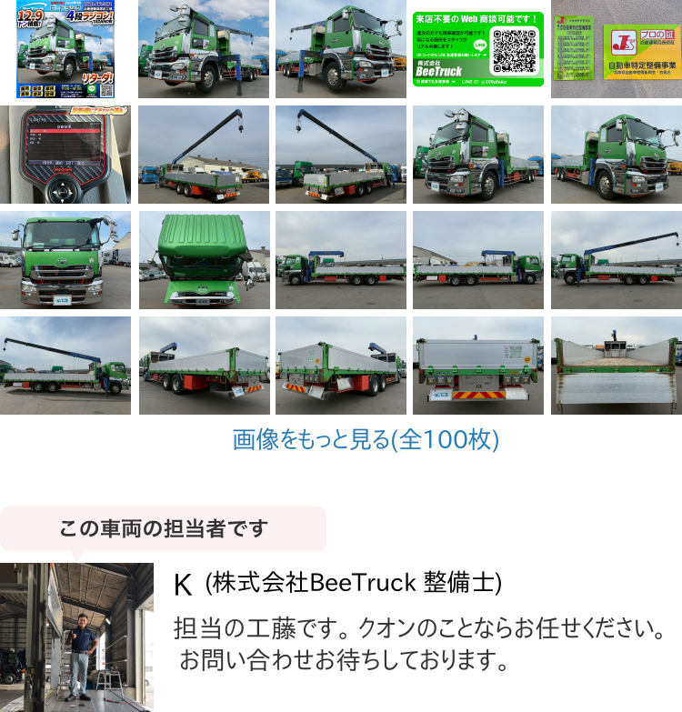 | ▼販売店コメント | ☆★車検付!令和8年11月迄★3軸1デフ!★☆ ◆TADANO製・4段ラジコン!◆フックイン!◆