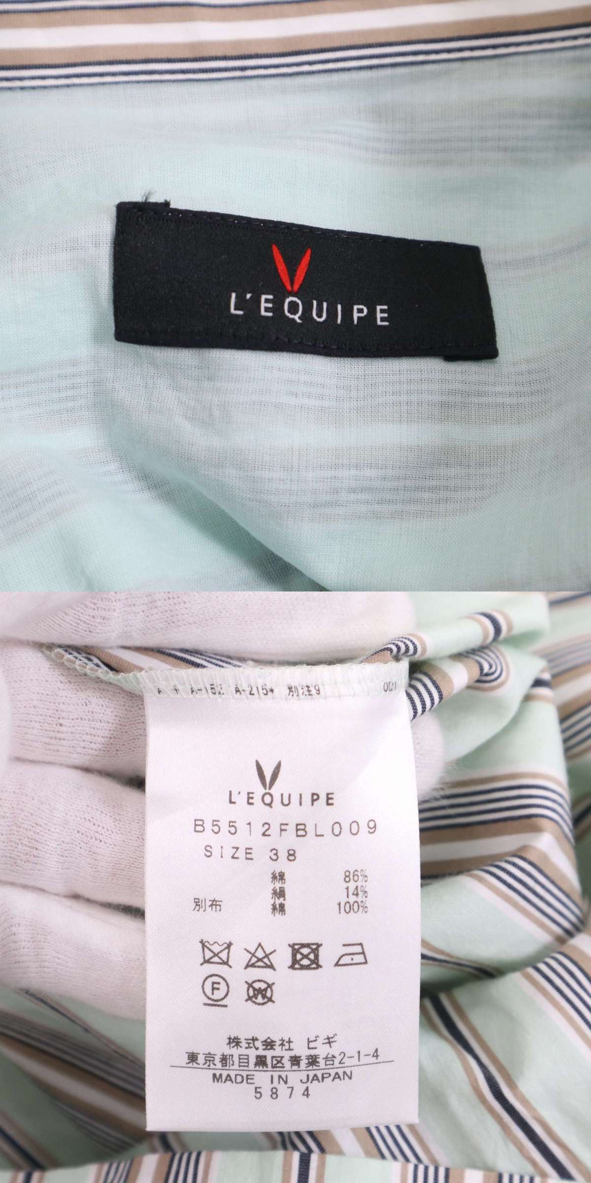 L'EQUIPE YOSHIE INABA レキップ ヨシエイナバ 絹 シルク混★ 長袖 オーバーサイズ ストライプ シャツ Sz.38 レディースの画像6