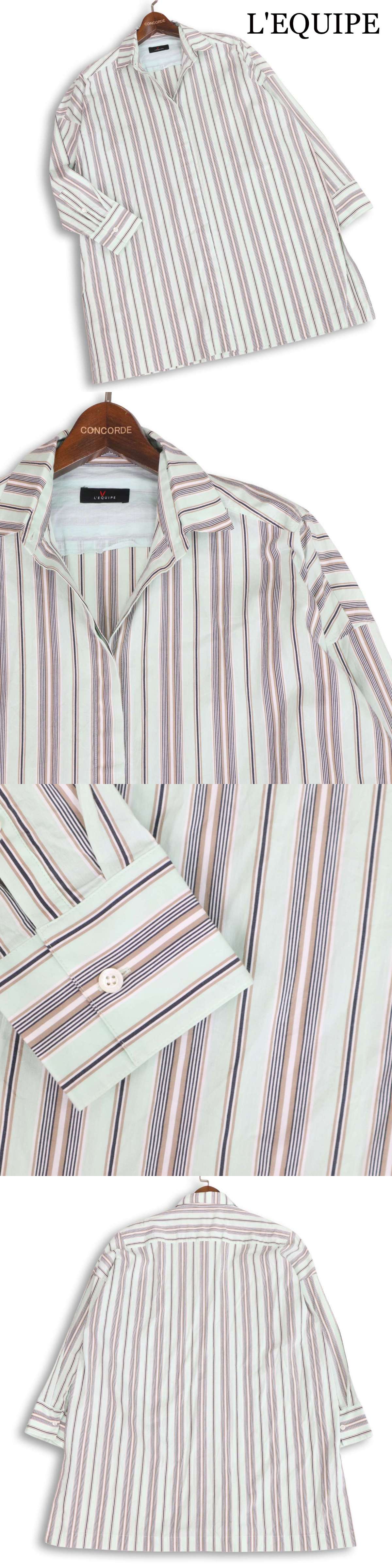 L'EQUIPE YOSHIE INABA レキップ ヨシエイナバ 絹 シルク混★ 長袖 オーバーサイズ ストライプ シャツ Sz.38 レディースの落札結果
