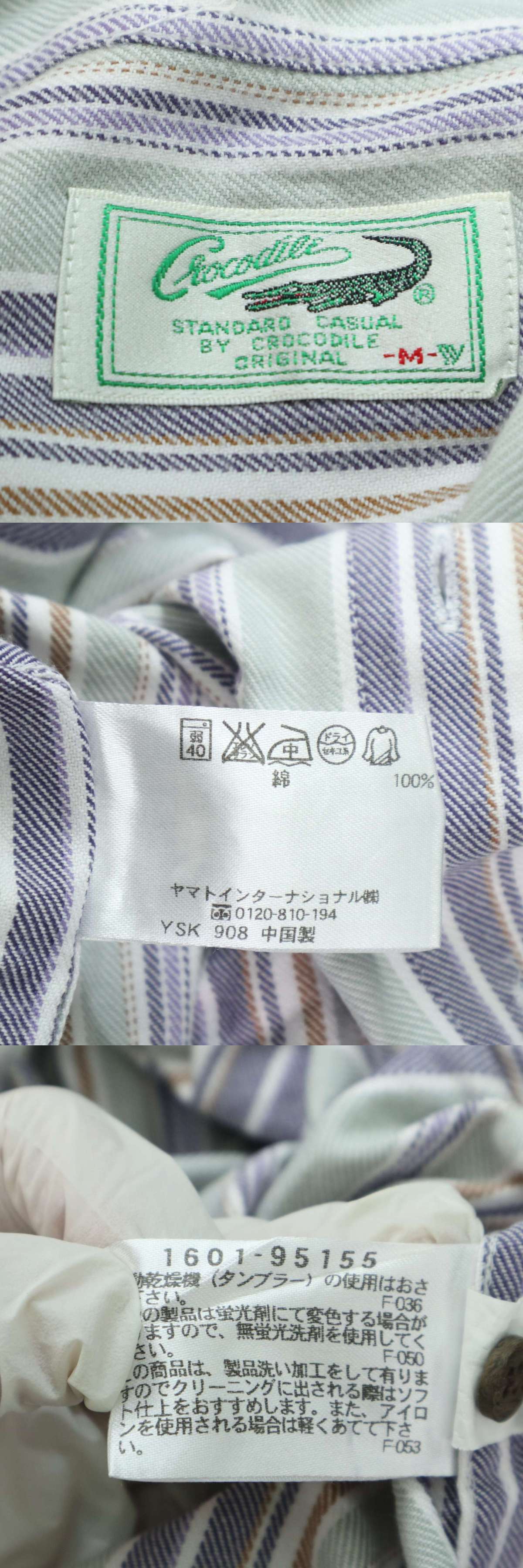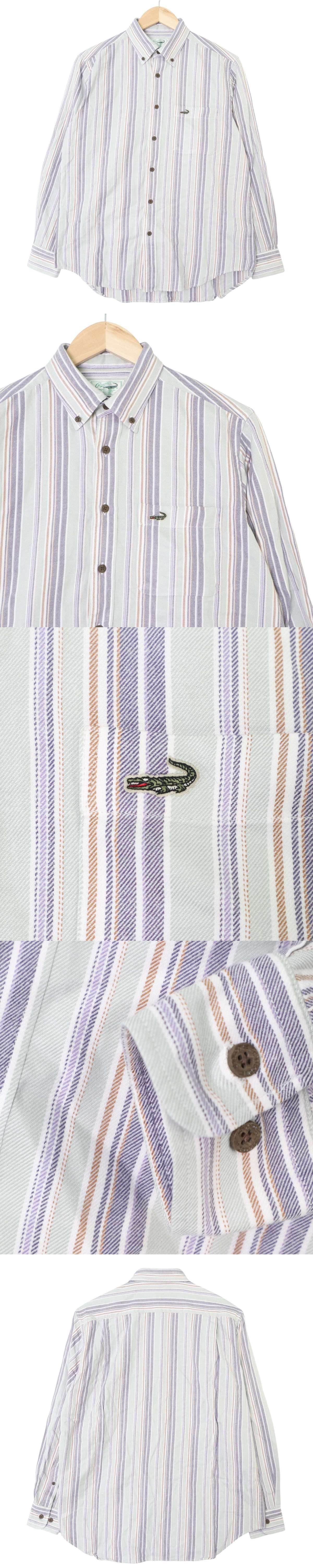 CROCODILE クロコダイル 通年 ワニ ロゴ刺繍★ マルチストライプ 長袖 ボタンダウン シャツ Sz.M メンズの落札結果