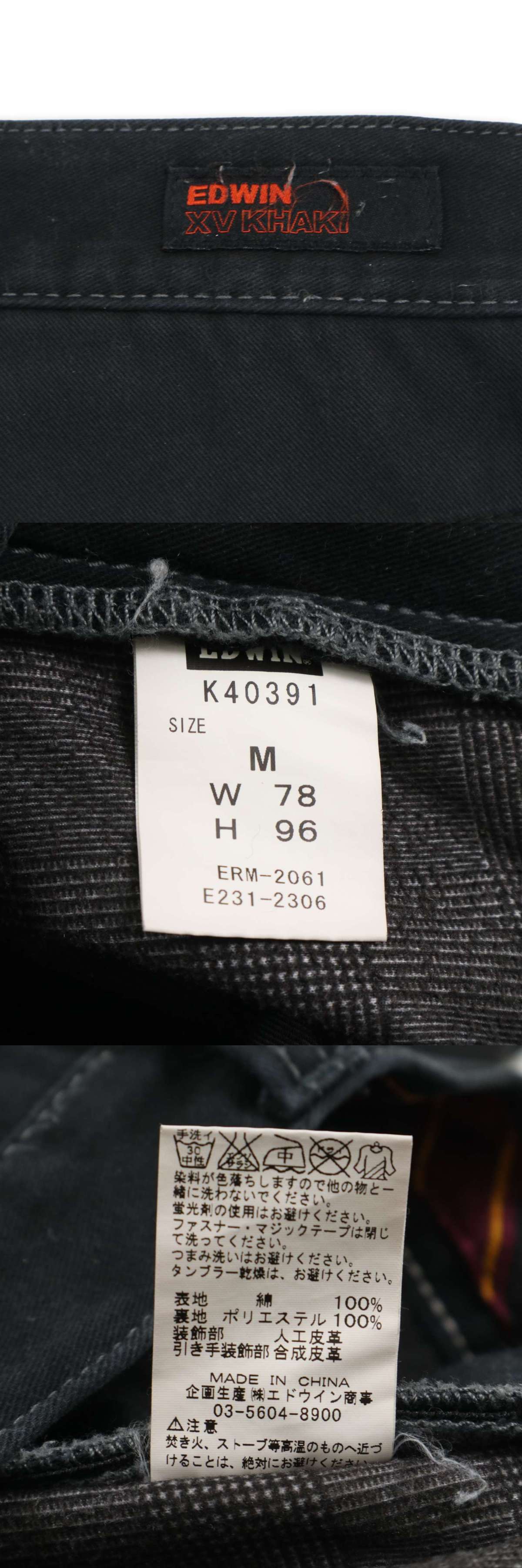 EDWIN エドウィン K40391 XV KHAKI ストレッチ 防風 防寒 裏起毛★ シューカット トラウザー パンツ Sz.M メンズ 黒 バイクの落札結果