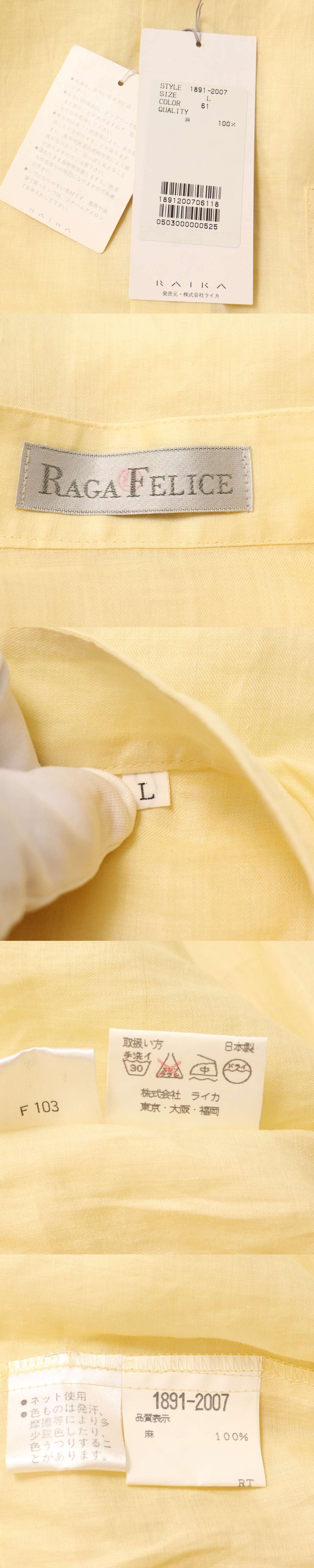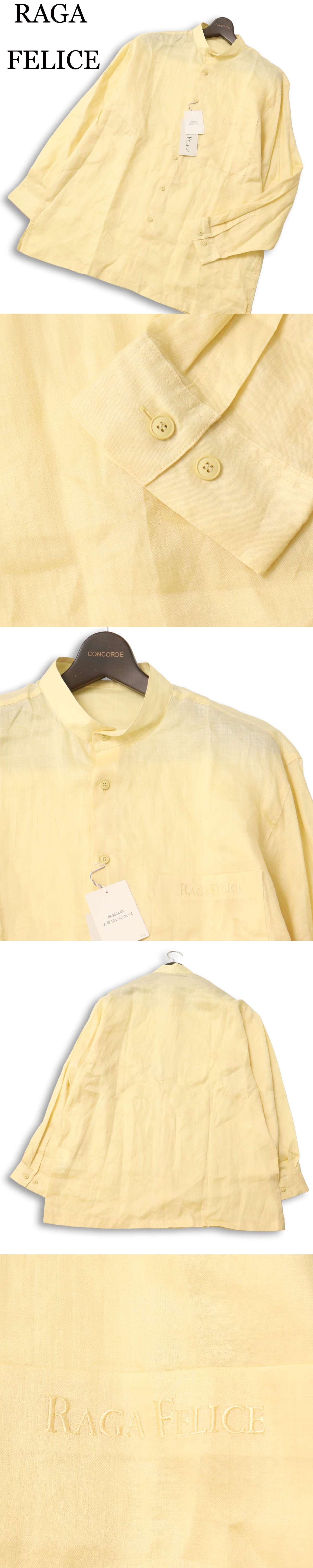 【新品 未使用】 RAGA FELICE ラガフェリス 春夏 麻★ リネン100% ロゴ刺繍 長袖 バンドカラー シャツ Sz.L メンズの落札結果