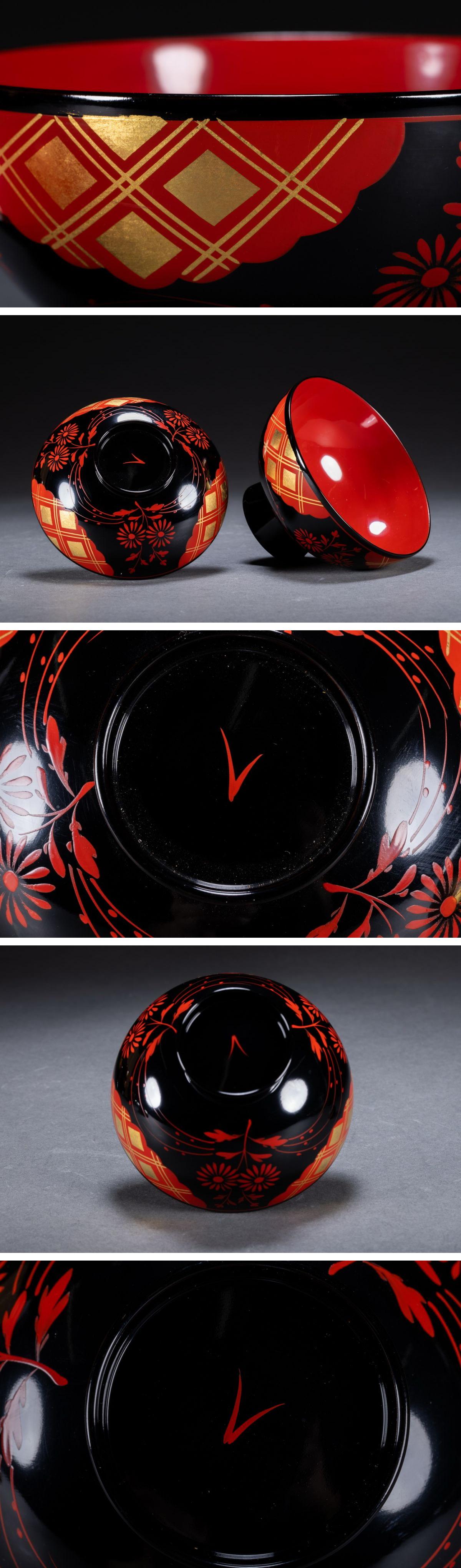 【雲錦】某有名オークション購入 時代物 輪島塗 金蒔絵吸物碗 五客 共箱 古置物 古擺件 古美術 時代コレクションWK9-235L