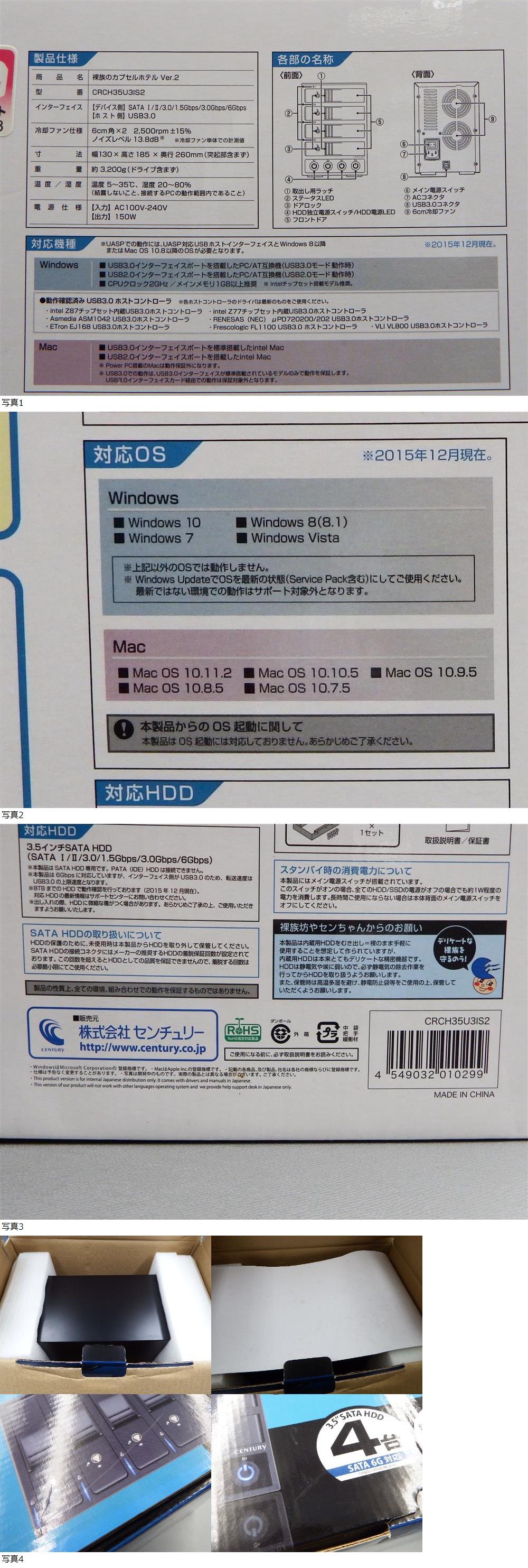 今回の出品は【動作OK・ジャンク】CENTURY センチュリー 裸族のカプセルホテル Ver.2 CRCH35U3IS2 本体/箱のみ 外付けハードディスク HDD ケース(札)