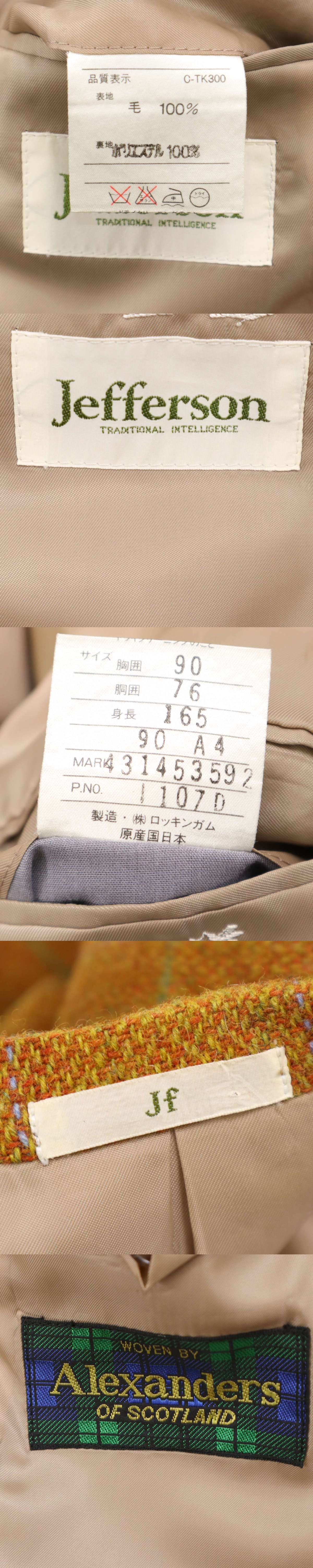 Jefferson ジェファーソン 秋冬 Alexanders ウール100%★ チェック ツイード テーラード ジャケット Sz.90A4 メンズ 日本製の落札結果