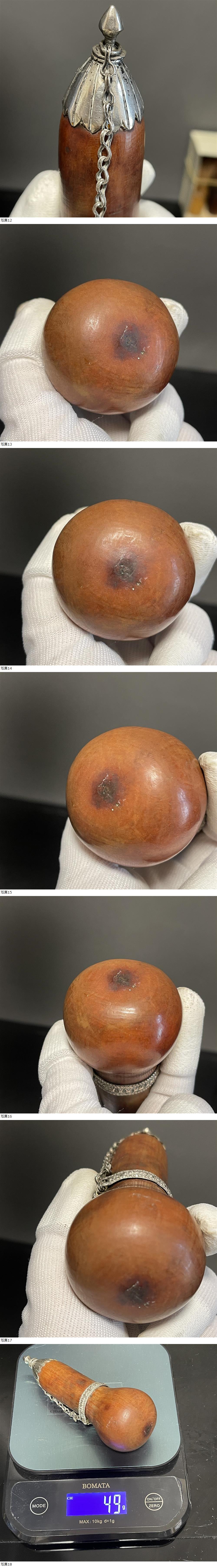 | 【C121】純銀嵌 天然 瓢箪壷 重さ:49.0 g 古民具 置物 飾り 時代物 中国古美術 |