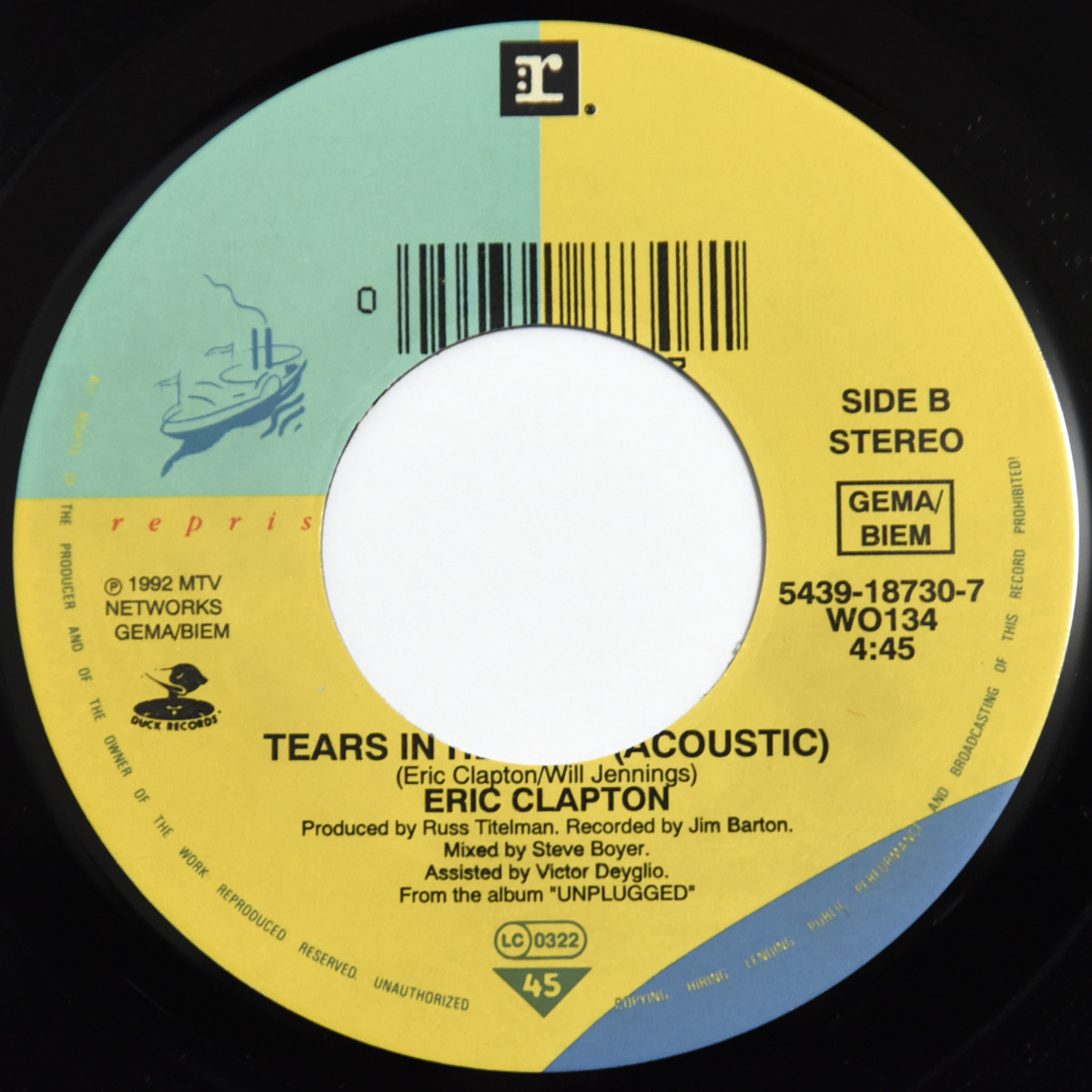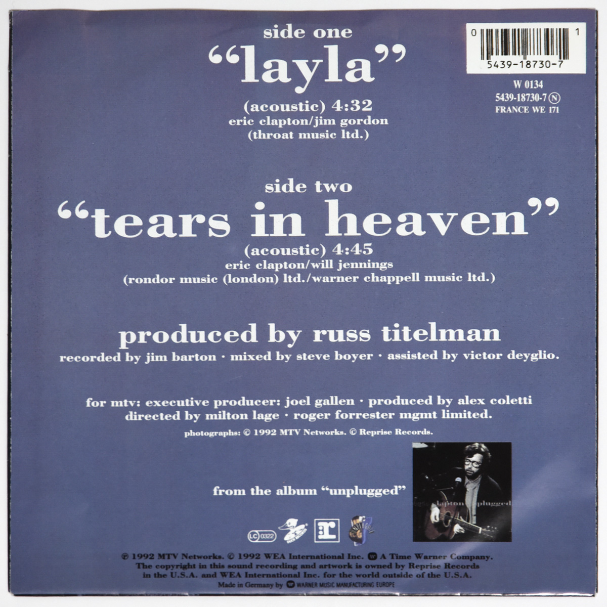 『1992年 7”盤 Eric Clapton / Layla (Acoustic) c/w Tears In Heaven (Acoustic) 試聴可 Reprise W 0134 EPレコード 45RPM ダブルサイダー エリック・クラプトン』
