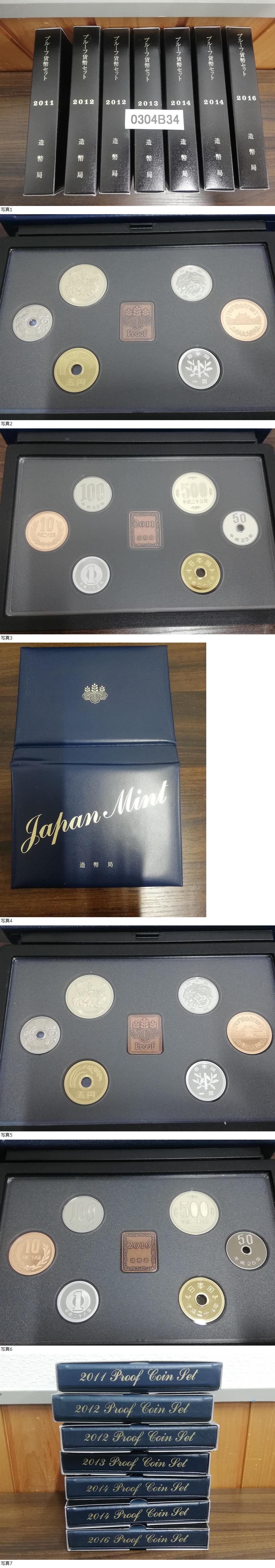 0304B34 日本 プルーフ貨幣セット おまとめ7点 2011~2014年 2016年 ※汚れありの商品説明