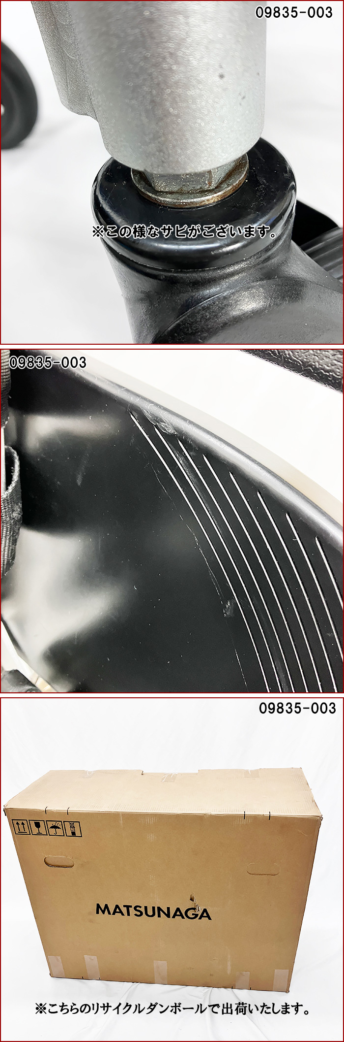| ※介護保険貸与等にて使用した中古品です(メンテナンス済)。 ※リサイクルダンボール(別商品のダンボール等)での梱包です。 ※下記内容をご了承いただいた上、ご注文ください ・中古品につき、メーカーおよび弊社の保証はございません。 ・お客様のご都合による返品は受け付けておりませんので、ご了承ください ・機能性の確認、メンテナンスには万全を期しておりますが、中古品につき使用上における事故や怪我については責任を負いかねますのでご了承ください。 |