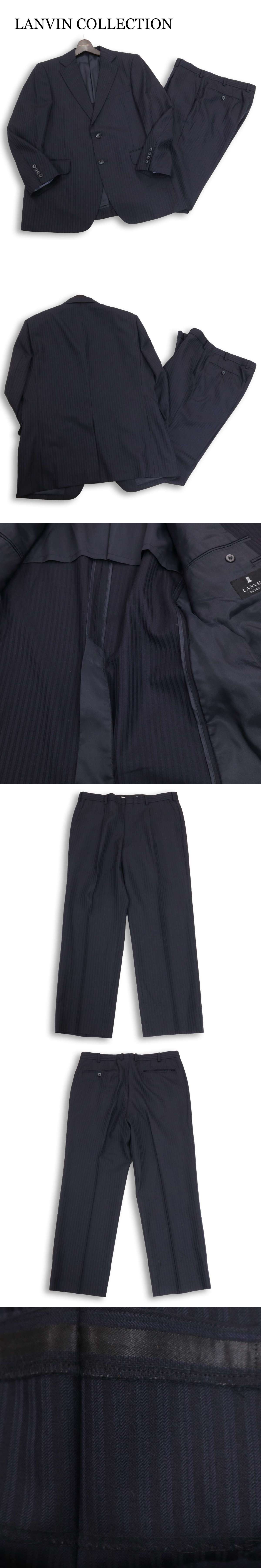 LANVIN COLLECTION ランバン コレクション 通年 背抜き★ストライプ セットアップ スーツ Sz.L位 メンズ ネイビー ビジネスの落札結果