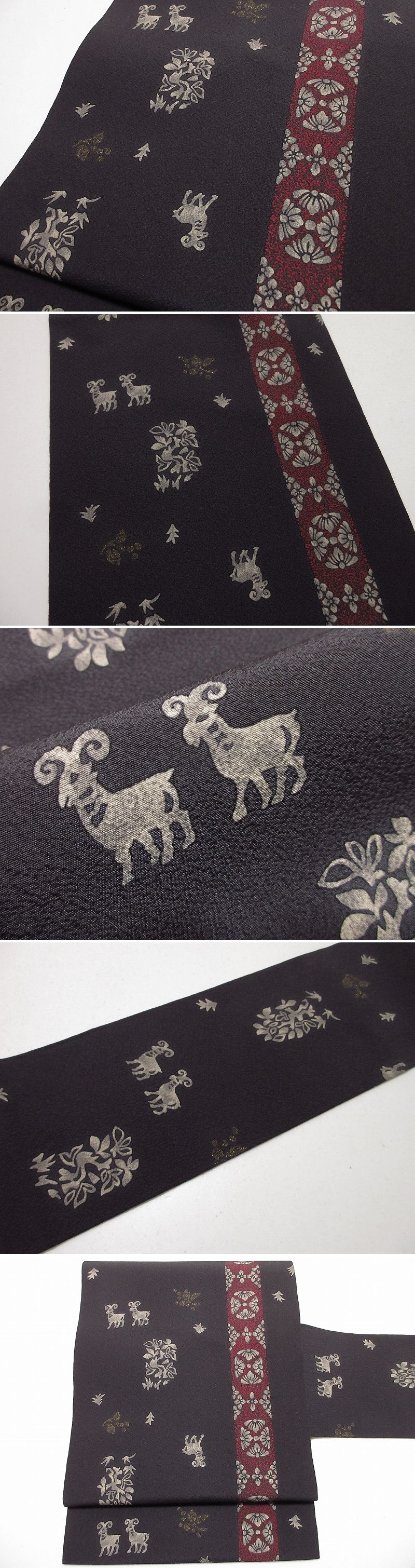 | 商品名 | ドークブア■九寸名古屋帯 黒地 金通し 鹿 正倉院 極上の逸品 B27 |